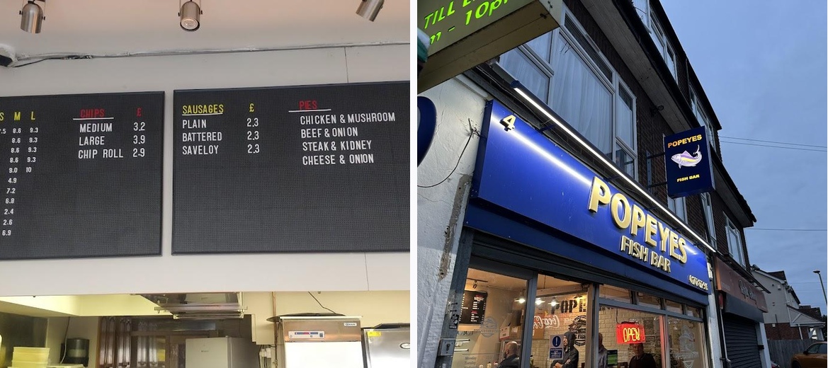 Enjoy the best fish and chips at Popeyes Fish and Chips in Waltham Cross! Located at Masons Parade, indulge in our succulent cod, crispy batter, and mouth-watering ribs, all at great prices. Experience a welcoming atmosphere and exceptional management. Call us at +44 1707 872906 for takeout today!